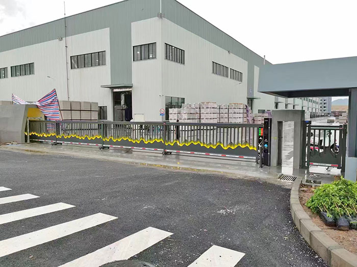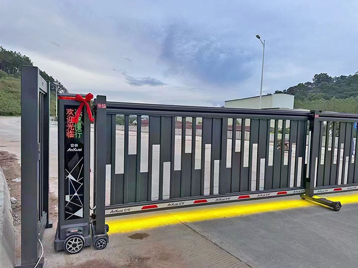 :智能平開工業門,采用伸縮平移加90度擺折的運作機制,占用空間小。擁有防水電機、漏電保護、自由開門、防撞防夾、語音播報、液晶顯示屏、紅外防爬、車牌識別、全開/半開等多種智能、人性化的結構和功能。